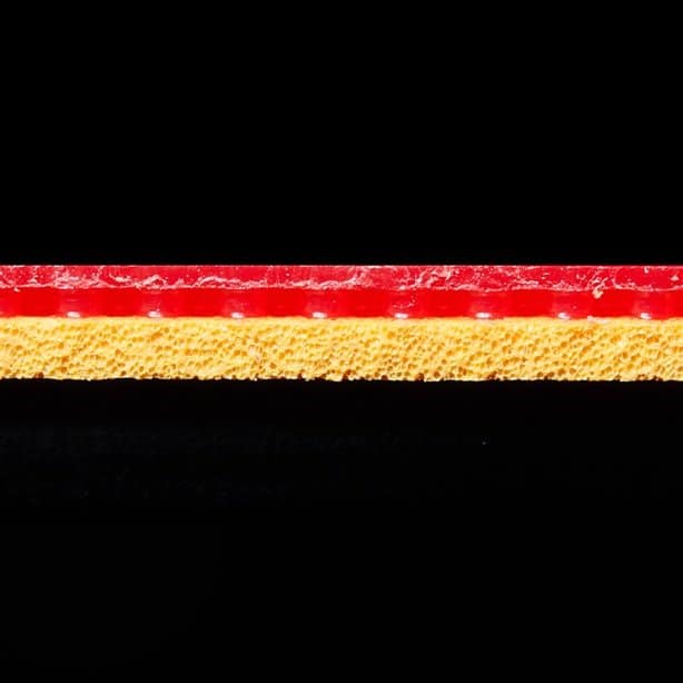 Thus the ball can faster make its way to the target – this enables the player to generate more pace while less energy is needed (PACE PERFORMANCE). The HEXER-sponge of the fourth TENSOR-generation provides the dynamics you search for and strokes from all table distances will be routine. For