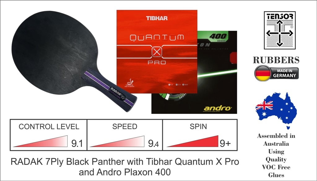 RADAK Black Panther Plus Tibhar Quantum X Pro and Andro Plaxon 400