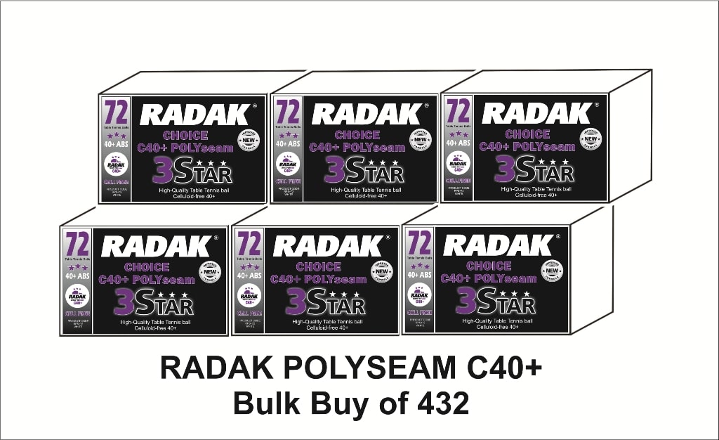 Radak Choice C40+ 3 star ABS Plastic Balls Polyseam, bulk buy of 432