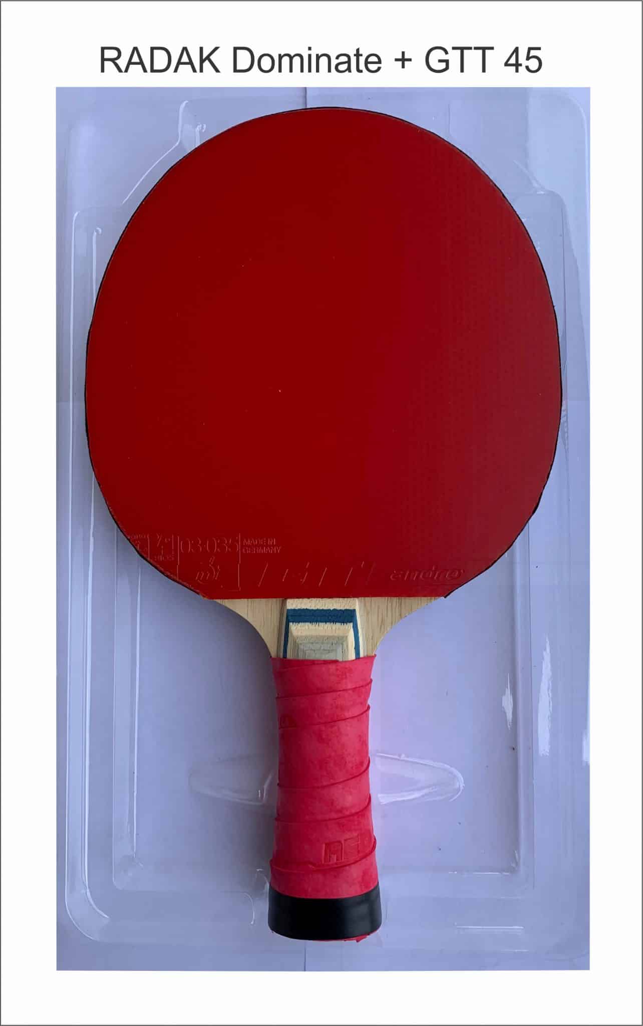 This is no Chinese premade combo, This uses our very own Radak Dominate ALC Carbon Blade, paired with the Super high quality German Manufactured GTT 45 rubbers. Suitable for regularly practicing competition players; precise implementation of all playing techniques possible by high-quality material.
