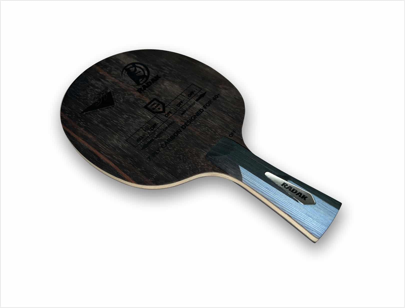 The Radak Ebenholz ST VII Carbon blade uses special hand selected high quality wood plies of different hardness which ensure enjoyment, precision, control and most of all, power. Because of its extreme speed and stiffness, this Ebenholz ST VII is the answer for players who want to achieve optimum acceleration without speed glue.