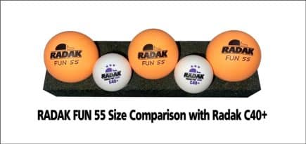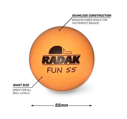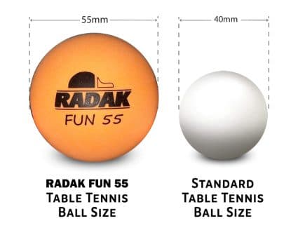 - The RADAK Fun XL 55mm Table Tennis Training Balls offer a great way for beginner table tennis players to build confidence before graduating to regulation size balls. Practicing with the larger 55mm table tennis balls allows players to hone in proper hitting form while simultaneously sharpening accuracy and properly gauging power with slower and more focused movements. Plus, the XL balls make for easier gameplay and longer rallies that will grant beginners and experienced players more contact with the ball which will translate to improved play in real matches. Take your table tennis skills to the next level with the RADAK XL Fun 55 Table Tennis Training Balls.