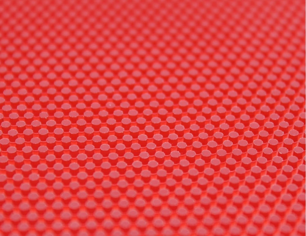 • The pimples hardness is the most important component of any rubber. The rubber compound of the individual pimples heads is pleasantly soft. You can already feel this when you lightly stroke the rubber. This makes the pimples more flexible and prevents them from breaking off so easily. In addition, the balls dig deeper into the rubber and are played back to the opponent with a lot of rotation and an unpleasant disruptive effect. Especially when playing with the plastic ball, the disruptive effect is immensely important in order to put the opponent under pressure.