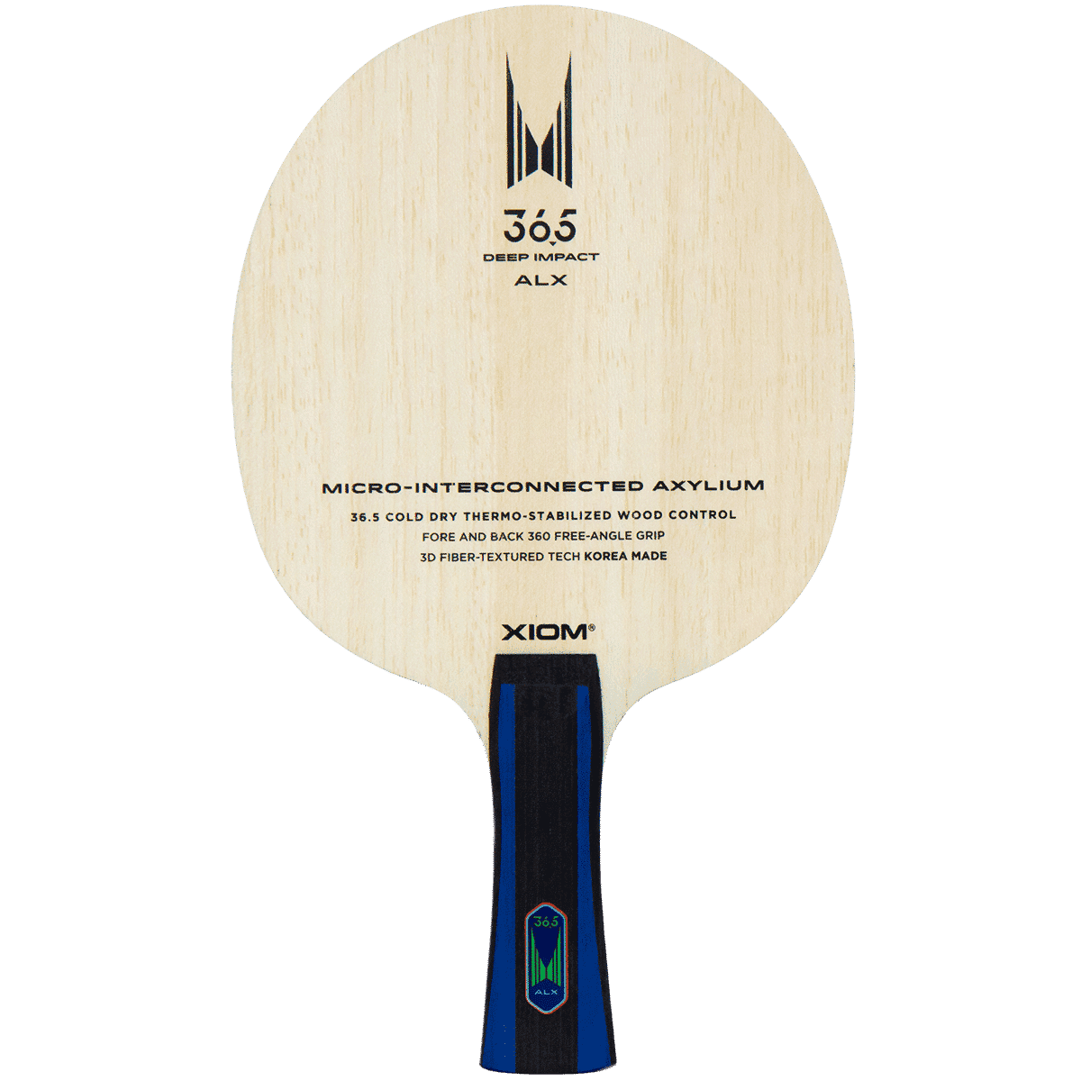 A modification of the famous Xiom Stradivarius blade. With the help of the 36.5 C cold press, wood technology, and new outer Axylium (Arylate) layers structure and carbon, the blade has perfect control while maintaining high speed for close-to-the-table strategies. Made in Korea.