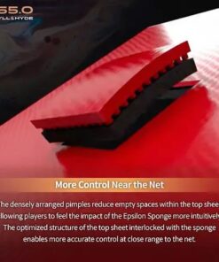 Jekyll & Hyde C55.0 is the first dual tension rubber featuring the revolutionary X-Factor technology. This innovative rubber eliminated the need for external boosters, offering built-in dual tension for superior performance. - More Control Near the Net : The densely arranged pimples reduce empty spaces within the top sheet, allowing players to feel the impact of the Epsilon Sponge more intuitively. The optimized structure of the top sheet interlocked with the sponge enables more accurate control at close range to the net.